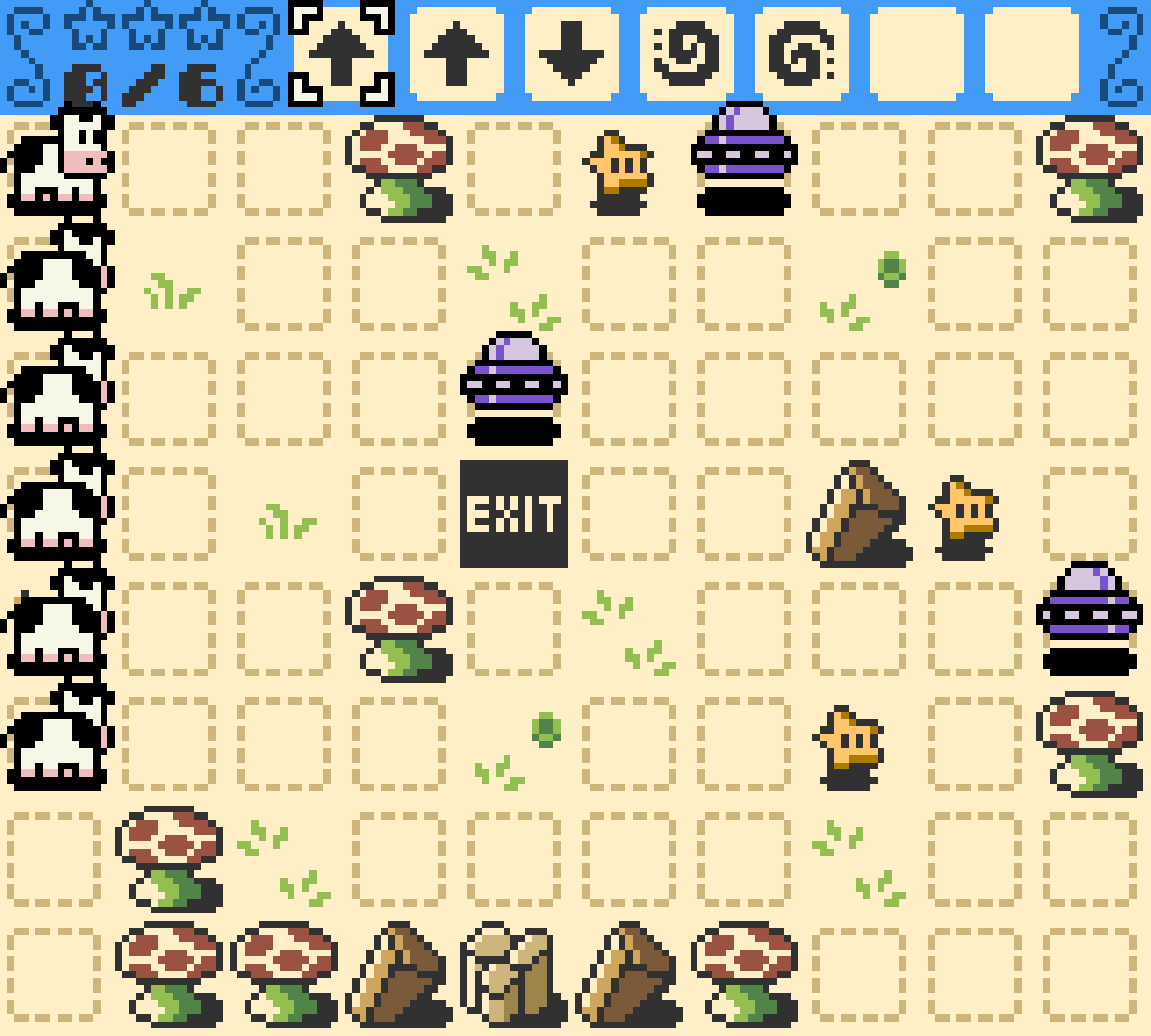 You star as a cowpoke working for Edgar, a world renown rancher and 4 time alien abductee. Tasked with using your bovine sensibilities to save his prize cattle, place arrows and special tiles to direct all cows to the exit, and collect the stars.